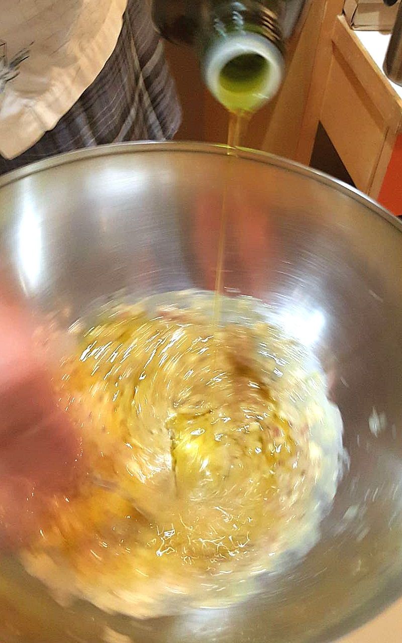 No quantities, no measure? You decide according to your taste, write down how much you use this time, then you will tune up the proportions to make it exactly to your liking after a few times. It will be your personal recipe. Aim for a creamy sauce that you can use for dipping, or as salad dressing by adding a little extra olive oil when you toss your greens.